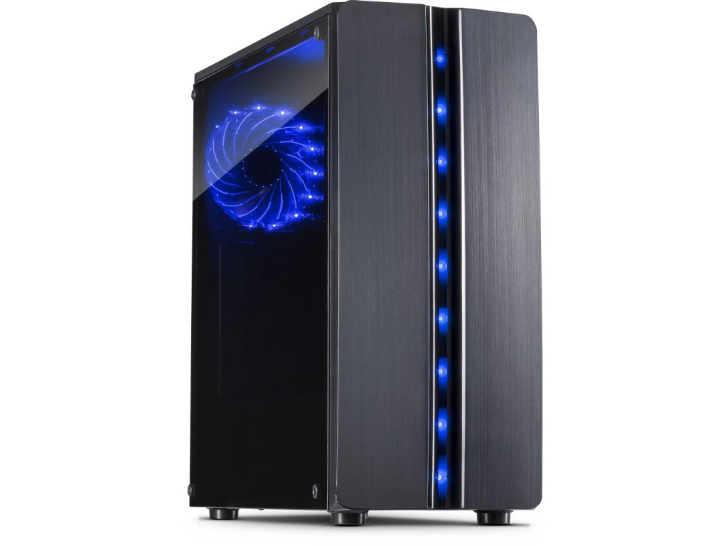 počítačová skříň: 1stCOOL Shark 1 (černá, průhledná bočnice, 1xFRGB) ATX