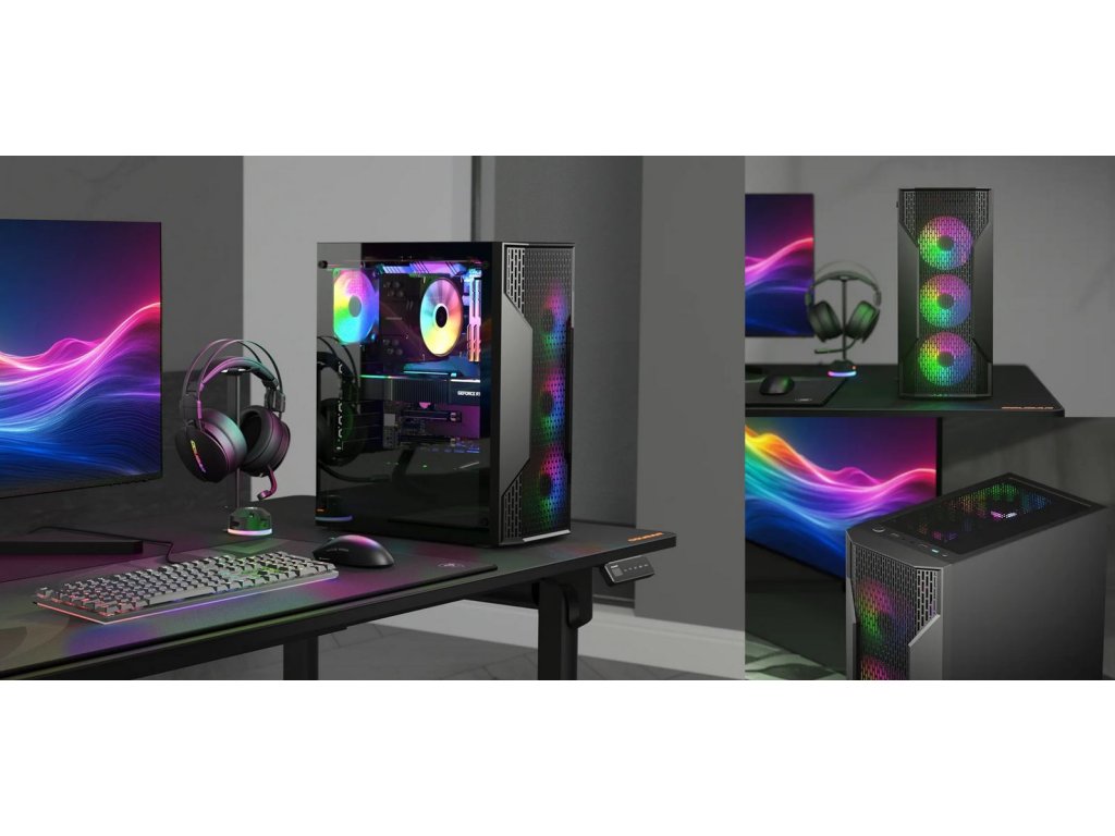 počítačová skříň: Cougar MX110 RGB Black (černá, USB 3.0) ATX