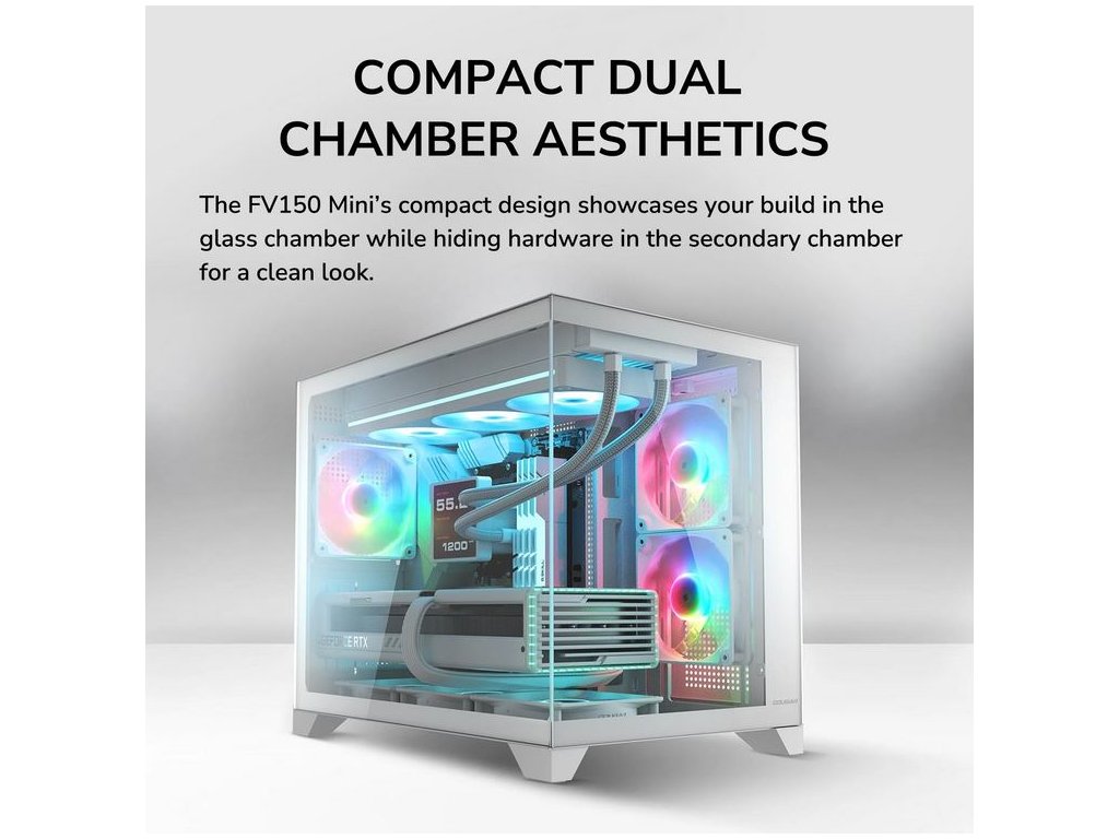 počítačová skříň: Cougar FV150 Mini (bílá, temperované sklo, RGB, USB 3.0) mATX
